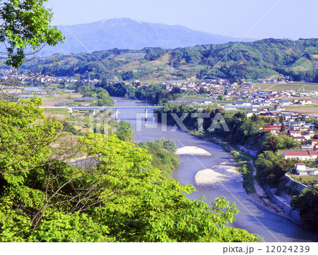 山形県 左沢楯山史跡公園から見下ろす最上川大湾曲の下流
