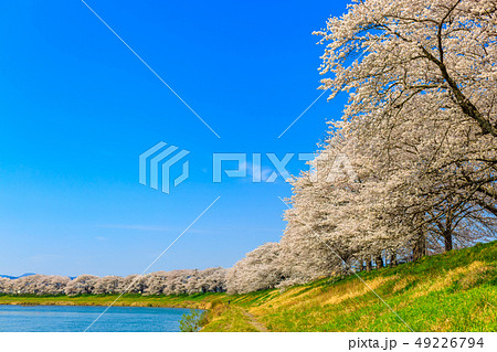 青空と満開の桜 白石川堤一目千本桜 宮城県大河原町