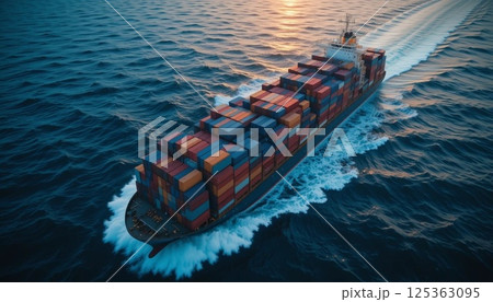 Aerial View of Large Container Cargo Ship Sailing in the Ocean