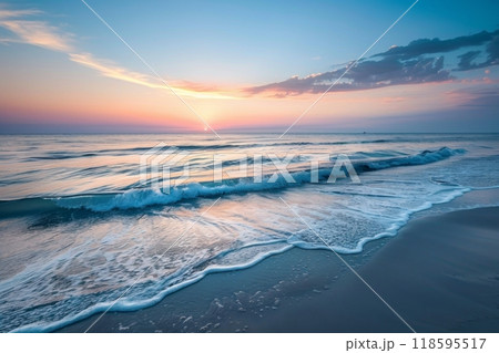 Pastel sunset over calm ocean waves