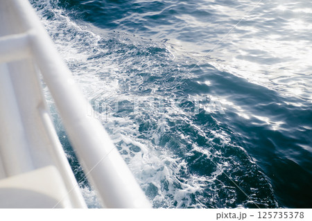 View of sea water with sun rays from the deck of a ferry