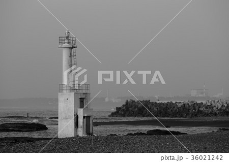 茨城県大洗町の海にある秋空の下の磯浜灯柱
