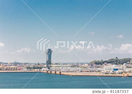 そびえ立つ大洗マリンタワー 夏の青空 茨城県東茨城郡大洗町港中央