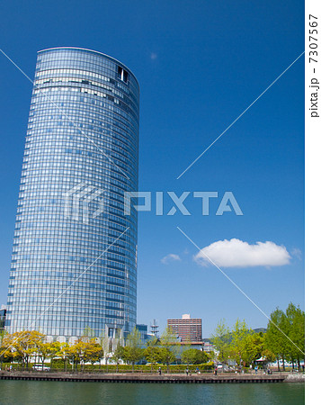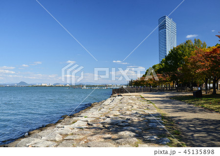 滋賀県大津市 プリンスホテルと大津湖岸なぎさ公園と青空