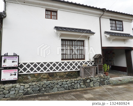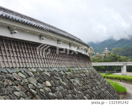 大洲市を流れる肱川沿いの石積堰堤にある漆喰塀