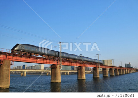 大淀川を渡るクルーズトレイン「ななつ星」(JR九州)