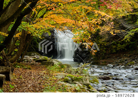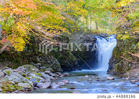 綺麗な大湯川の流れと銚子の滝 秋 秋田県 鹿角市