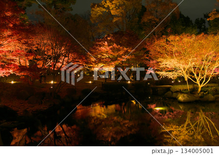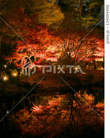 ライトアップされた美しい紅葉 自然風景(2024年12月)