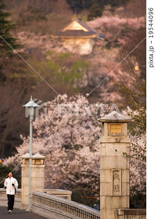 仙台城大手門と城下町を結ぶ春爛漫の大橋を満開の桜を見ながら国際センター駅から大町西公園駅に向うランナ