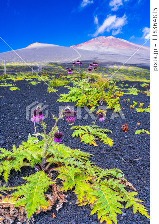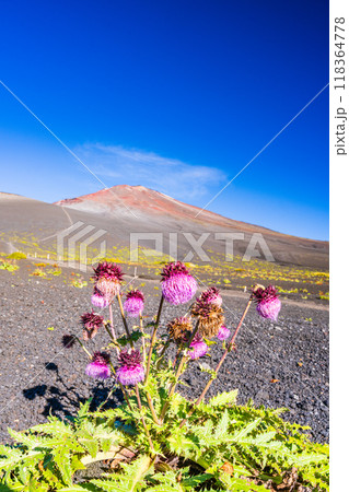 【静岡県】富士山 御殿場口登山道のフジアザミ 朝