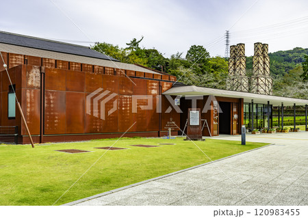 中部地方・韮山反射炉・芝生広場とガイダンスセンター、反射炉の煙突の眺め・静岡県伊豆の国市(2)