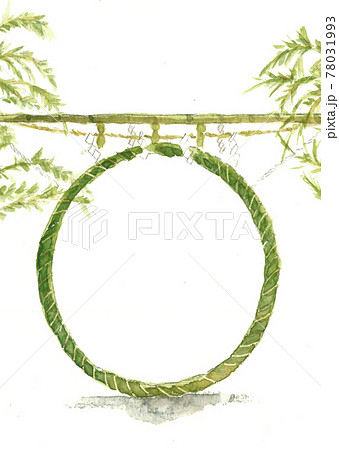 水彩:茅の輪くぐりの輪 白バック コピースペースあり