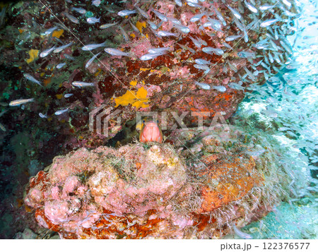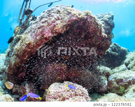 美しいネンブツダイ、クロホシイシモチの幼魚の大群とそれを食糧としつつ守る大きなアカハタ。中木ヒリゾ浜