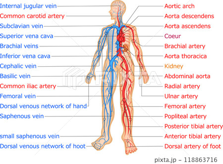 血管 動脈 静脈 血管分布 イラスト 日本語