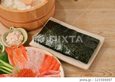 手巻き寿司、手巻すし、夕食、手巻き鮨、手作り、団欒。