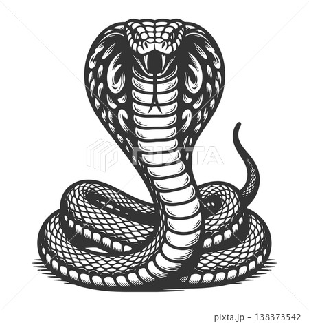 Attacking Snake Head Monochrome Grunge Vector Illustration