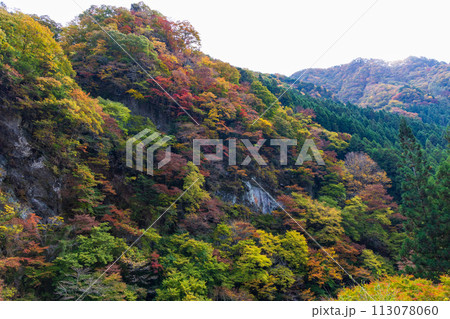 埼玉県秩父市大滝 奥秩父荒川支流の紅葉の名所大血川渓谷の紅葉もみじと山の景色
