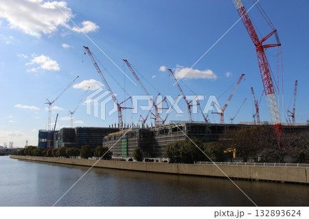 クレーン 林立ちするクレーン 大規模建設工事