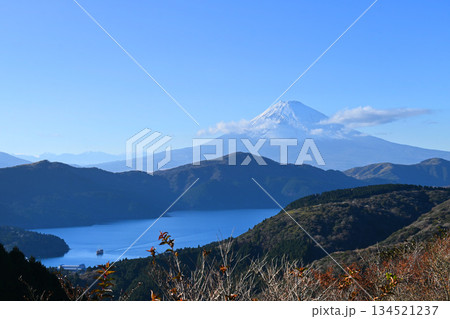 天閣台から見る雄大な富士山と芦ノ湖/神奈川県箱根町・1月
