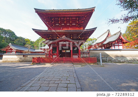 中津市薦神社の国指定重要文化財の朱塗りの神門