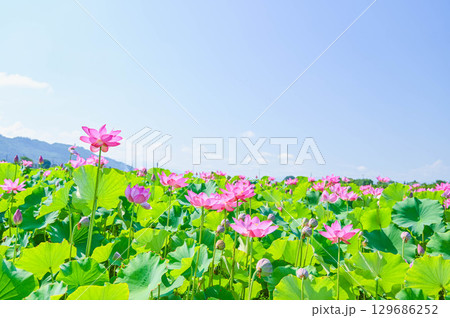 〈島根県)荒神谷史跡公園の大賀ハスの咲く風景