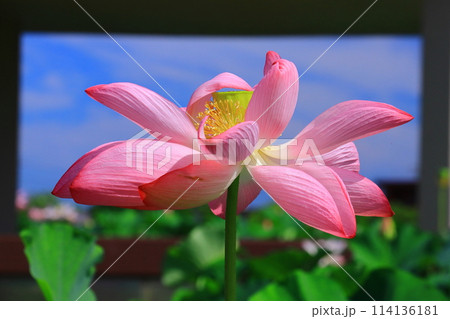〈島根県)荒神谷史跡公園の大賀ハスの咲く風景