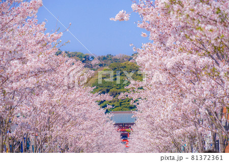 満開の桜並木道(鎌倉の参道若宮大路)