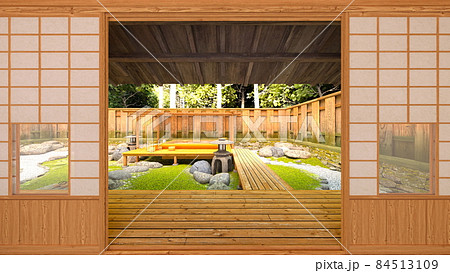庭の手入れをする女性 日本庭園 田舎 空き家 草抜き
