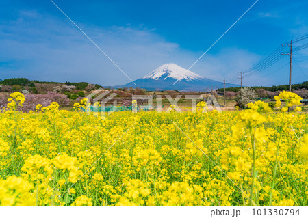 (静岡県)裾野市パノラマロードの菜の花畑越しに富士山