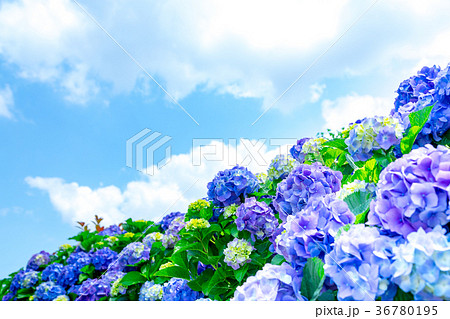 晴れの日のアジサイ 紫陽花 あじさい 梅雨時期