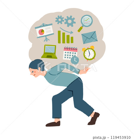 たくさんの仕事を抱える男性のイラスト