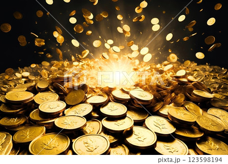 爆発しているたくさんの輝く金貨