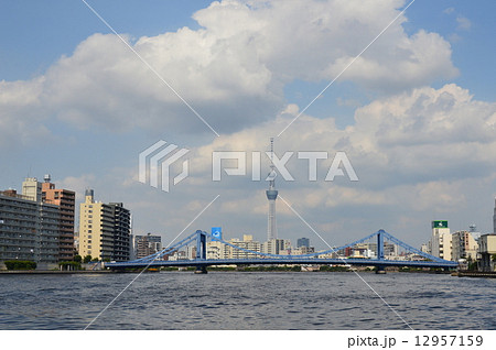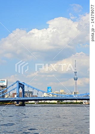 隅田川の川面から見た「清洲橋」と「スカイツリー」(東京都中央区/江東区)