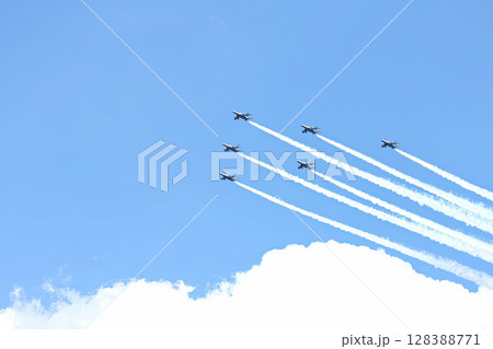 夏の大阪、夏空に飛ぶブルーインパルス、大阪の空の下、関西万博が開催、ブルーインパルスありがとう