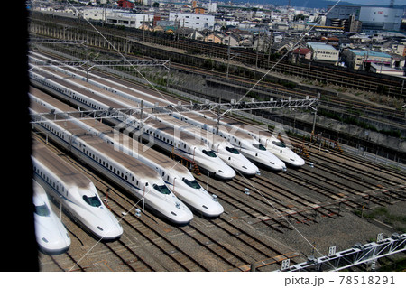 大阪モノレール下り線側から新幹線車両が並ぶ絶景ポイント、東海道新幹線鳥飼基地を車中より望む