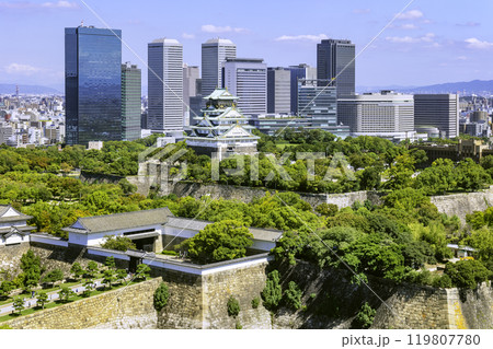 大阪城天守閣と立ち並ぶ高層ビル群(大阪府大阪市)