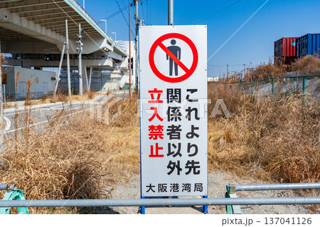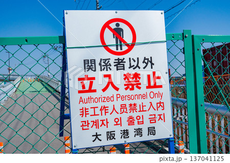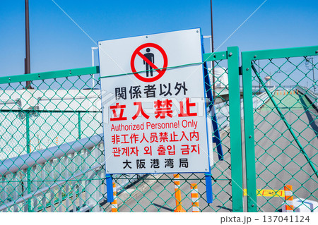 大阪市此花区 夢舞大橋の歩道 関係者以外立入禁止看板