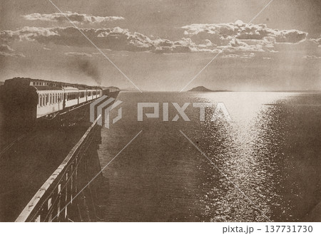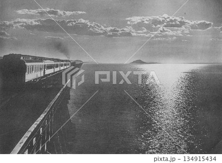 古写真 1916年 米国 ユタ州 大塩湖とアメリカ大陸横断鉄道