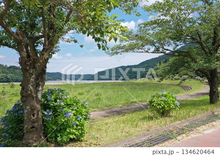 鹿児島県鹿屋市の大隅湖の桜とアジサイの遊歩道