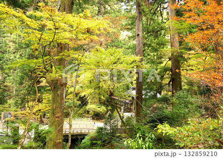 大雄山最乗寺のパワースポットの御供橋と結界門付近の秋の紅葉風景