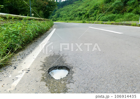大雨で穴が空いた道路