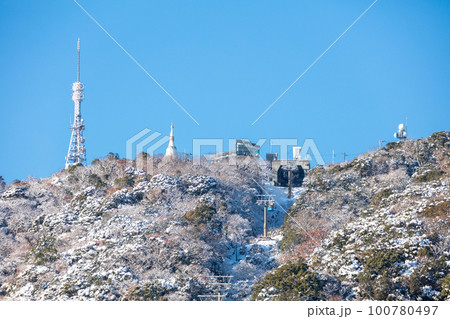 日本の横浜都市景観 一夜明け(大雪からの)、横浜駅前の街並みなどを望む。薄っすらと雪が…=7日