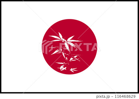 日本の国旗と日の丸の中の大麻(赤×白)のイラスト。