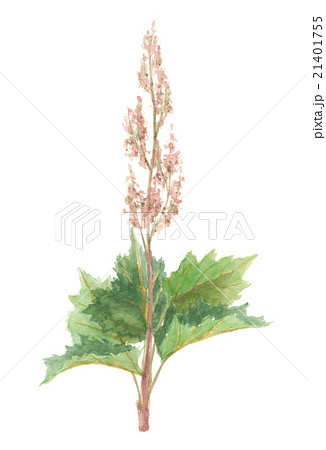 ルバーブ 水彩色鉛筆イラスト 背景透過
