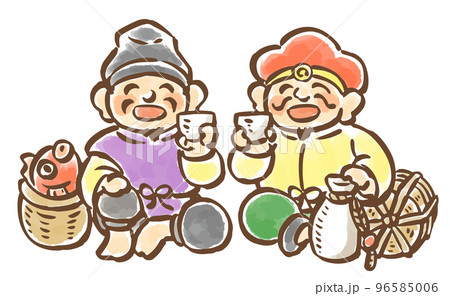 七福神の恵比寿天と大黒天のポップな和風イラスト