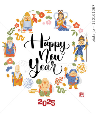 2025年巳年年賀状 シンプルでかわいい七福神のイラスト