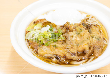 おいしい掻き上げ蕎麦、半熟たまご入り