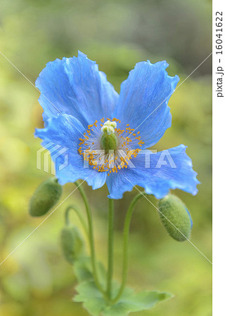 幻の花・ヒマラヤの青いケシの花蕾・横位置