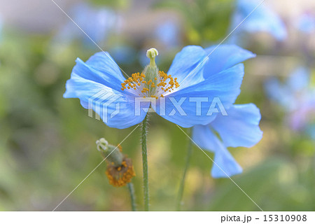 幻の花・ヒマラヤの青いケシの開き始めた花・横位置