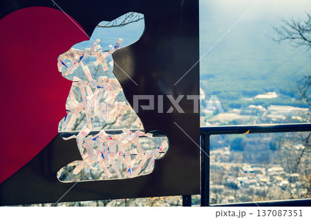 うさぎ神社のおみくじ掛け【河口湖天上山公園】